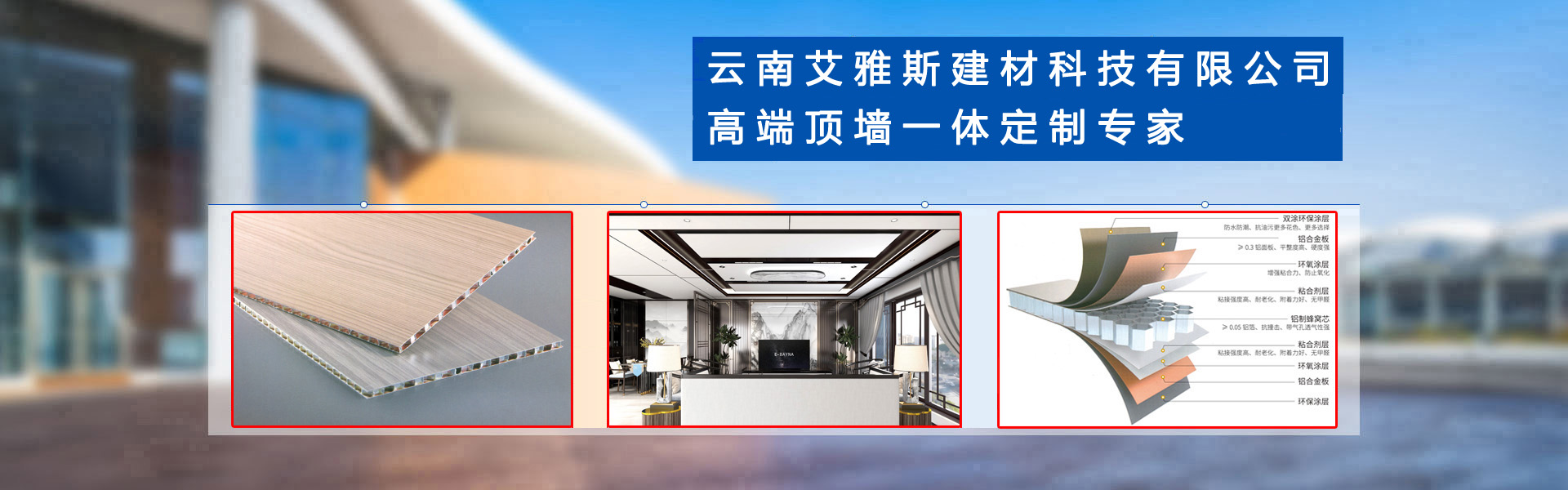 高端頂墻一體定制專家——云南艾雅斯建材科技有限公司,位于昆明經(jīng)開區(qū)小石壩社區(qū)白水塘上村36號,專注于鋁蜂窩大板,配套鋁型材,集成墻板,無主燈,照明系列的設計、生產(chǎn)、銷售、安裝于一體的高端頂墻定制專家,是一家具有多年生產(chǎn)研發(fā)及完整銷售管理經(jīng)驗的公司,艾雅斯鋁蜂窩板全新視覺觀感,高端大氣,風格百變,隨心設計! 云南艾雅斯建材生產(chǎn)的鋁蜂窩板、鋁型材、集成墻板深受廣大消費者所喜愛,具有環(huán)保無醛,防水防潮,隔音隔熱,高強度,抗沖擊,不易變形,堅固牢靠等特點,廣泛應用到各行各業(yè),成為全國各地的加工廠、批發(fā)商一站式的供應商,備受好評。云南艾雅斯建材科技有限公司嚴格執(zhí)行售前、售中、售后,全方位的合作形式,我們堅持以產(chǎn)品質量為中心,以客戶需求為理念,為廣大加工廠,批發(fā)商提供優(yōu)質的產(chǎn)品與服務。了解更多